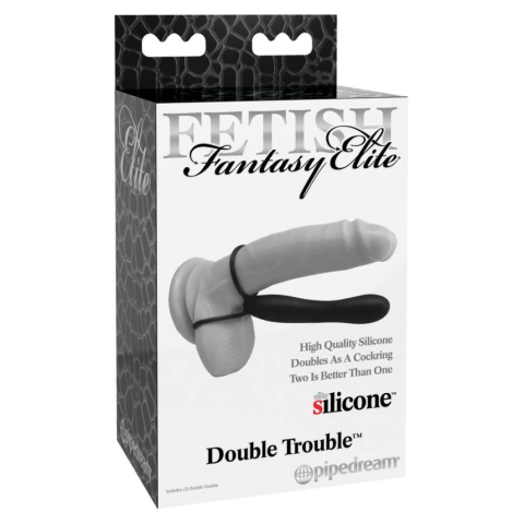 1 kép Fetish Double Trouble - here- és péniszgyűrű anál dildóval (fekete)