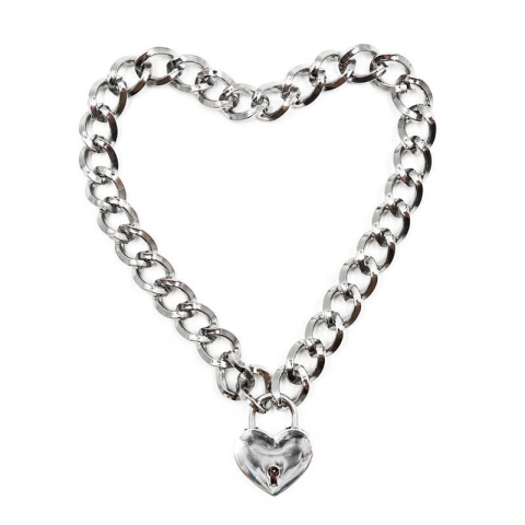 Fetish nagyszemű nyaklánc zárható lakattal. Jó minőségű, nagyszeműnek mondható láncszemekből álló nyaklánc, ami egy esztétikus, szivet formázó lakattal zárható össze.Maximálisan 42 cm-es nyak kerületre helyezhető fel, addig viszont szabadon álllítható,