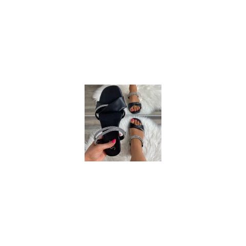 1 kép FF Lux Shoes Ébensikk - fekete, strasszos pántos papucs Méret: 41