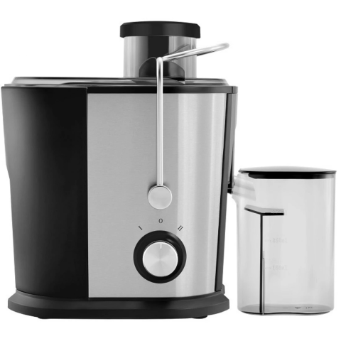 Az FG electronics FS-500-as gyümölcscentrifugájával kiváló gyümölcsleveket készíthetünk gyümölcsökből és puhább zöldségfélékből. A gyümölcslé és a rostok automatikus szétválasztása a készülék két oldalán levő kettő különálló edénybe történik. A gyümölcscentrifuga 2 sebességgel tud működni.