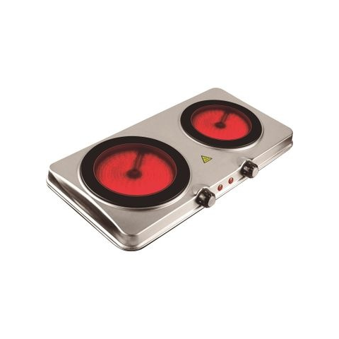 FG ELECTRONICS FS-717 Elektromos kerámia főzőlap 2 lapos FS717 Könnyen használható kerámia főzőlap 18,7 cm és 16,4 cm-es átmérővel. Egyszerű a használata, bekapcsolás után a gyors felmelegedést a 2000 wattos teljesítménynek köszönhetjük. Az egyszerű hőmérséklet ellenőrzést termosztát biztosítja. A készülék visszajelző lámpával és csúszásmentes talpakkal rendelkezik. teljesítmény: 2000 W főzőfej átmérő: 18,7 cm és 16,4 cm indikátor lámpa 5 fokozat termosztát mechanikus szabályzógomb kerámia főzőlap, rozsdamentes acél készülék