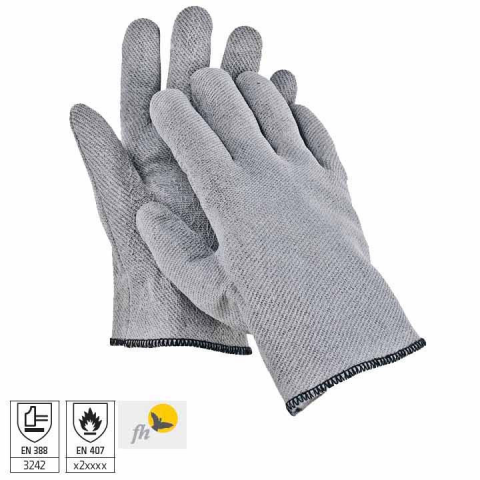 FH Hőálló kesztyű 25 cm Varrott védőkesztyű speciális , nitril bevonatú, hőszigetelő, nem szőtt textilből. A védőkesztyű alkalmas magas hőmérsékletű tárgyak kezelésére (250 °C-ig). A termék teljes hossza 25 cm. A termék megfelel az EN 388/3232C, EN