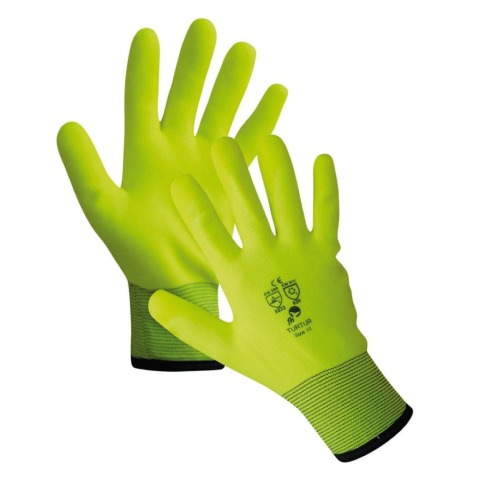 TURTUR téli nylon PVC mártott kesztyű 8 • melegen bélelt, kötött, vízlepergető nylon kesztyű, figyelemfelkeltő sárga színben • PVC mártott tenyér és ujjak • vastag bélés és rugalmas mandzsetta
