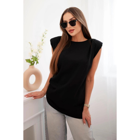 1 kép FiatalDivat Aszimmetrikus blúz fodrokkal a vállán 6085 fekete modell