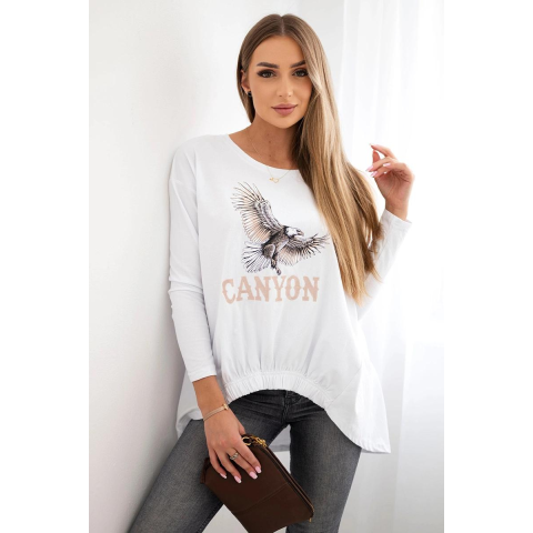 1 kép FiatalDivat Aszimmetrikus blúz sas mintával és Canyon felirattal, 69450 modell, fehér