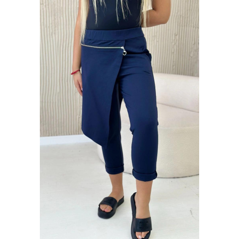 1 kép FiatalDivat Aszimmetrikus háromnegyedes nadrág dekoratív cipzárral, 6514E modell, sötétkék színben