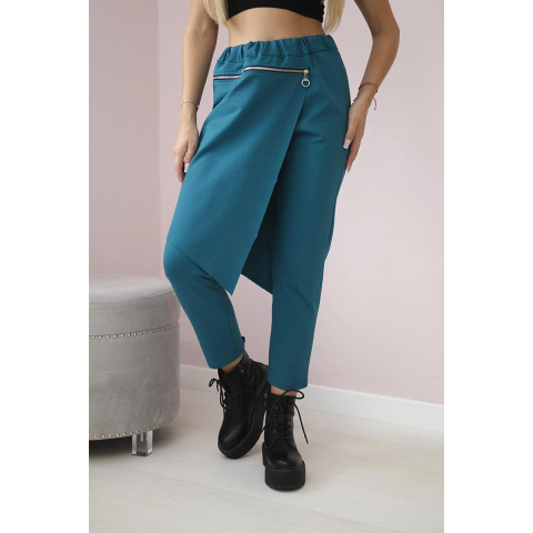 1 kép FiatalDivat Aszimmetrikus háromnegyedes nadrág dekoratív cipzárral 6514E sötéttürkiz modell