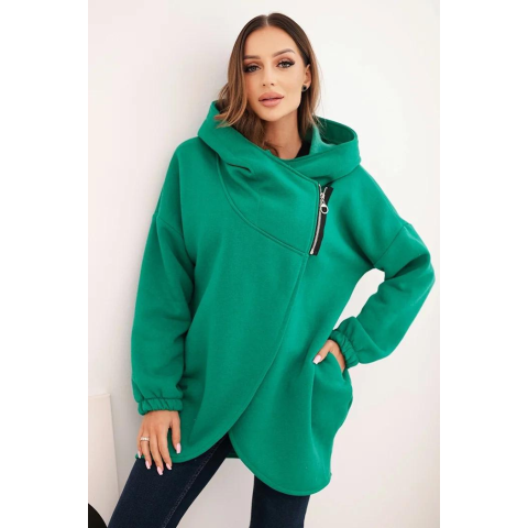 1 kép FiatalDivat Bélelt kapucnis pulóver aszimmetrikus cipzárral, 7765-ös modell, zöld