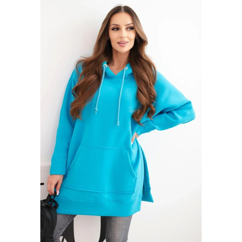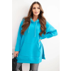 1 kép FiatalDivat Bélelt kapucnis pulóver hasítékokkal és kenguruzsebbel, 9319-es modell, türkiz