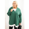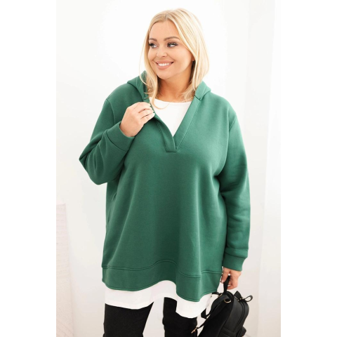 1 kép FiatalDivat Bélelt kapucnis pulóver V-nyakkivágással, 6940-es modell, sötétzöld