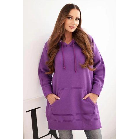 1 kép FiatalDivat Bélelt pulóver hasítékokkal és kenguruzsebbel, 9319-es modell, lila