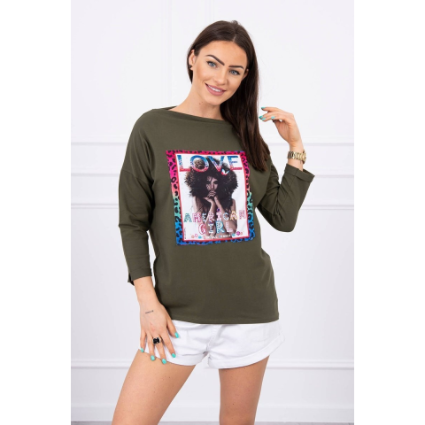 1 kép FiatalDivat Blúz American Girl rávarrással kaki szín
