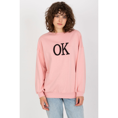 1 kép FiatalDivat Bő, kapucni nélküli pulóver OK púderrózsaszín hímzett felirattal