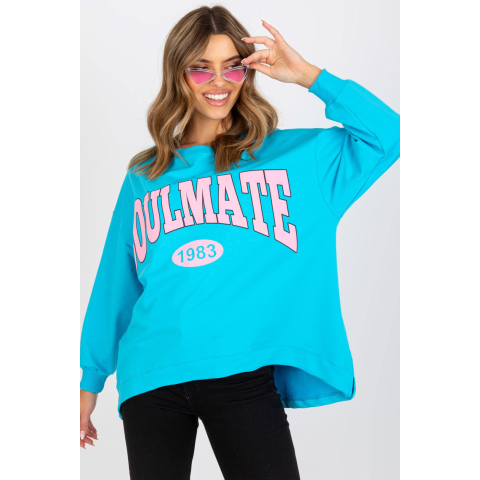 FiatalDivat Bő pulóver kapucni nélkül Soulmate türkiz felirattal