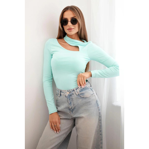 1 kép FiatalDivat Body blúz hosszú ujjal és aszimmetrikus nyakkivágással modell 134871 menta