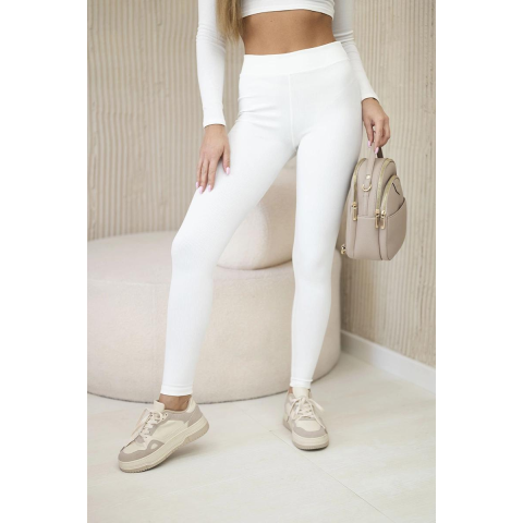 1 kép FiatalDivat Bordázott anyagból készült magas derekú leggings, 69847-es modell, ekrü színben