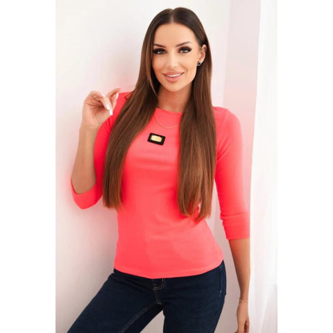 1 kép FiatalDivat Bordázott blúz háromnegyedes ujjakkal és rátéttel 64672 neonrózsaszín
