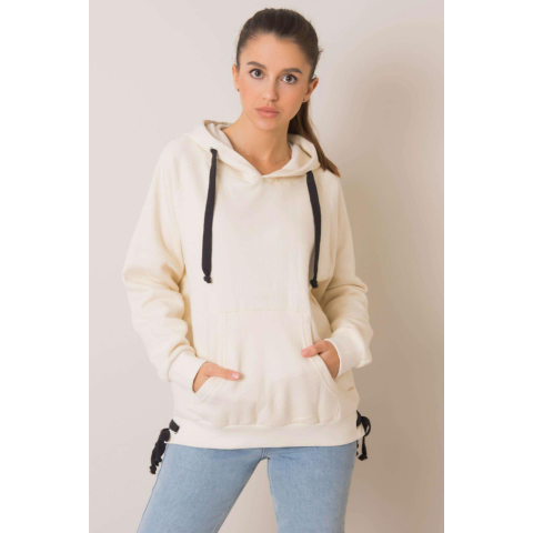 1 kép FiatalDivat Cassie hőszigetelt pulóver kapucnival és fűzős, ekrü színű