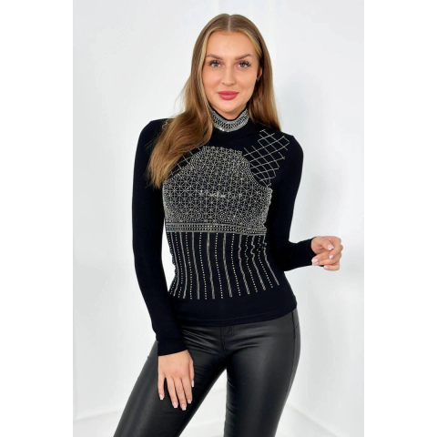 1 kép FiatalDivat Cirkonokkal díszített viszkóz blúz 9636 fekete modell