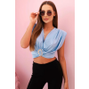 1 kép FiatalDivat Crop-top blúz mély kivágással és díszes csattal, 6101-es modell, világoskék