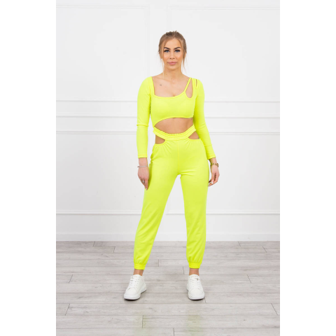 1 kép FiatalDivat Crop-top tréningruha szett kivágásokkal 9344-es modell neon sárga