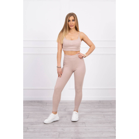1 kép FiatalDivat Crop-top tréningruha szett pánttal, modell 9355 bézs
