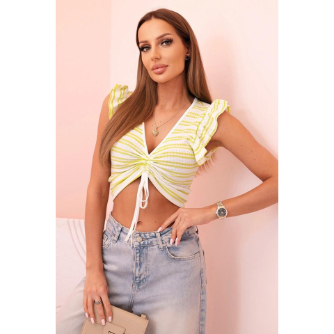 1 kép FiatalDivat Csíkos felső ráncolással és fodrokkal, 69330-as modell, zöld