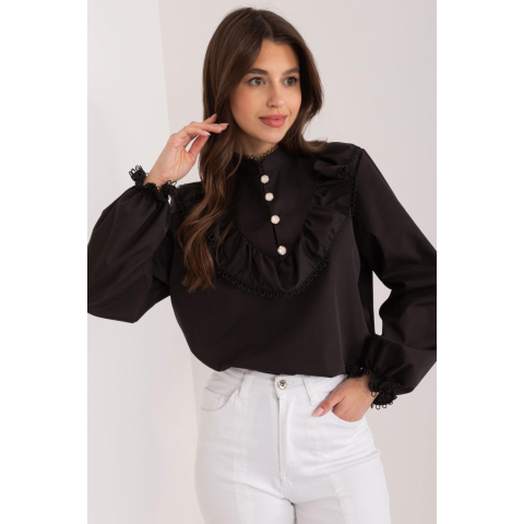1 kép FiatalDivat Díszítő fodros blúz állógallérral 55634 fekete modell