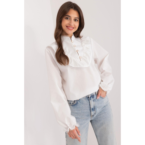 1 kép FiatalDivat Díszítő fodros blúz állógallérral, modell 55634 fehér