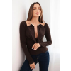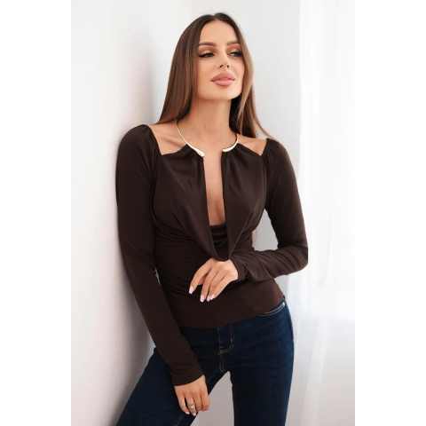 1 kép FiatalDivat Elegáns blúz drapírozott dekoltázzsal és hosszú ujjal 10474-es modell barna