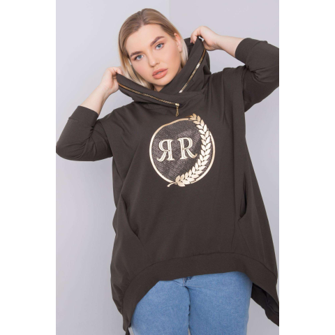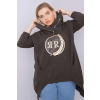 1 kép FiatalDivat Extended Fantasy pulóver mintával, kapucniján cipzárral, khaki színű
