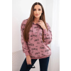 1 kép FiatalDivat Feliratos kapucnis pulóver 67962-es modell ódon rózsaszín színben