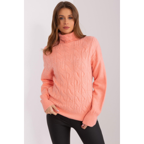 1 kép FiatalDivat Garbós nyakú pulóver fonott mintával, 40197-es modell, barack színű