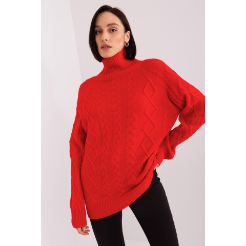 1 kép FiatalDivat Garbós nyakú pulóver fonott mintával, 55212 modell, piros