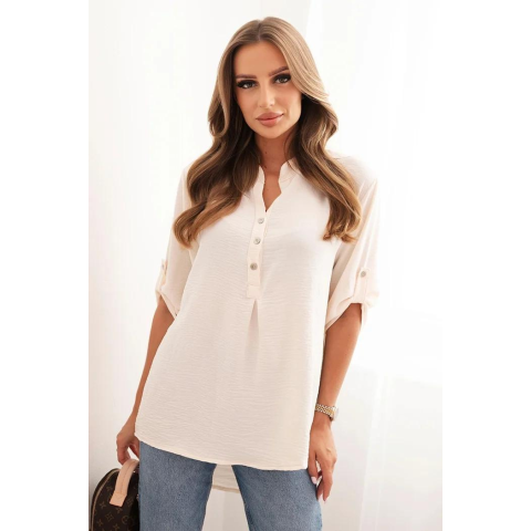 1 kép FiatalDivat Gombos blúz hátul meghosszabbított, 11817-es modell, világos bézs