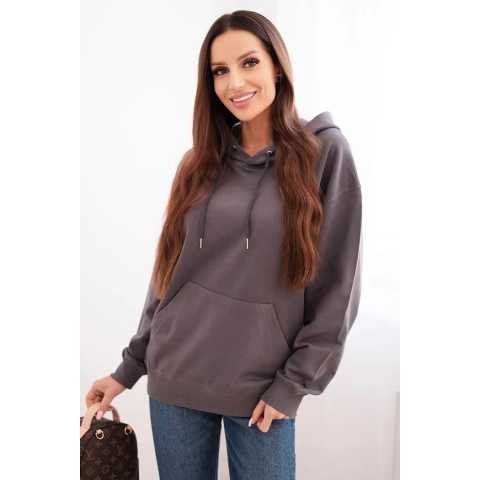1 kép FiatalDivat Grafitszínű pamut kapucnis pulóver kenguruzsebbel HIT01