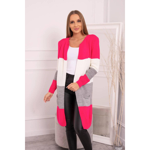 1 kép FiatalDivat Háromszínű kardigán pulóver modell 2019-12 málna + ekrü színű