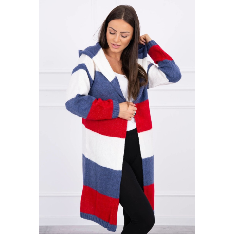 FiatalDivat Háromszínű kardigán szvetter modell 2019-25 ekrü szín+farmer szín+piros
