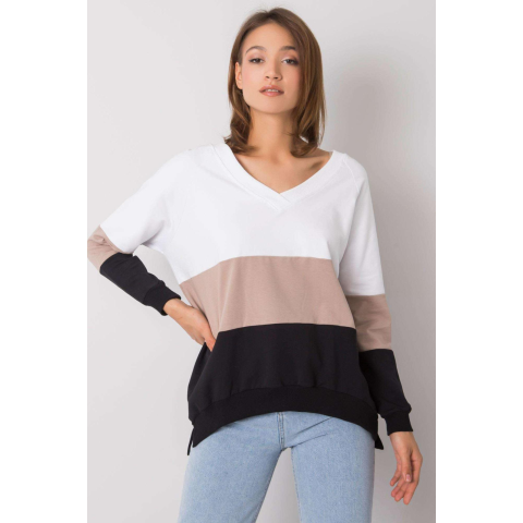 1 kép FiatalDivat Háromszínű Lotta pulóver, elöl és hátul szív nyakkivágással bézs+fekete