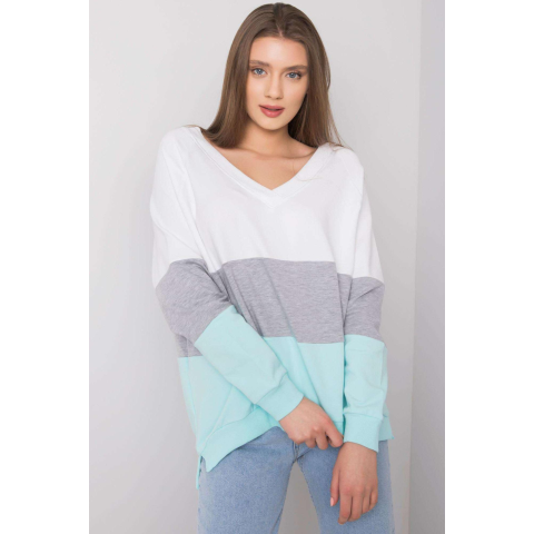 1 kép FiatalDivat Háromszínű Lotta pulóver elöl és hátul szíves nyakkivágással, fehér+szürke