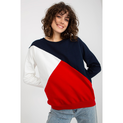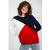 1 kép FiatalDivat Háromszínű pulóver kapucni nélkül modell 46341 sötétkék+piros