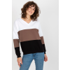 1 kép FiatalDivat Háromszínű pulóver szív nyakkivágással, modell 32834 fehér+fekete