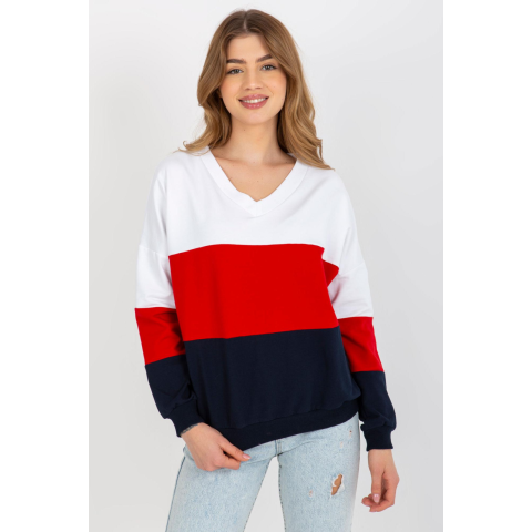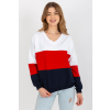 1 kép FiatalDivat Háromszínű szívnyakú pulóver modell 32834 fehér+sötétkék