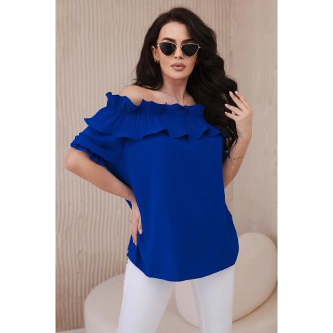 1 kép FiatalDivat Hispán blúz dekoratív fodrokkal, IT-28 királykék modell
