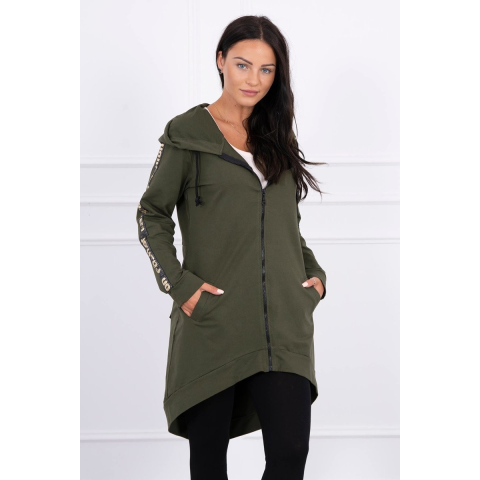 1 kép FiatalDivat Hosszabbított melegítő felső kapucnival és cipzárral hátul kaki szín