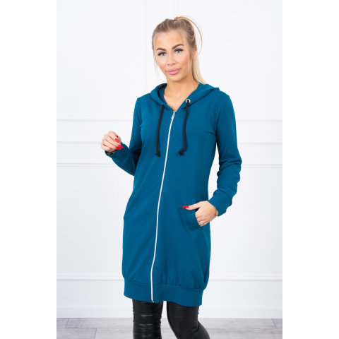 1 kép FiatalDivat Hosszabbított melegítő felső kapucnival sötét türkisz kék