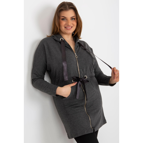 1 kép FiatalDivat Hosszabbított pulóver kapucnival és cipzárral, 46402 grafit modell