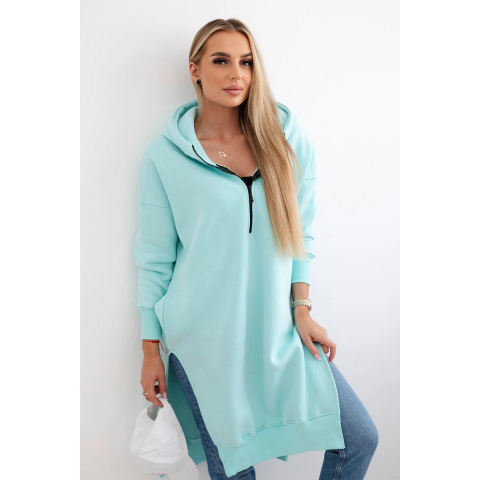 1 kép FiatalDivat Hosszú meleg pulóver kapucnival és hasított 9301-es modell mentol