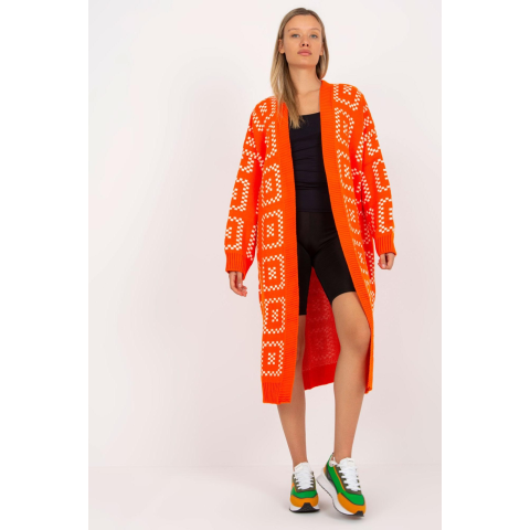 1 kép FiatalDivat Hosszú mintás kardigán pulóver 29608-as modell narancssárga