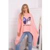 Egy meghosszabbított csípővel rendelkező oversize blúzt mutatunk be, pillangómintával és Butterfly felirattal.